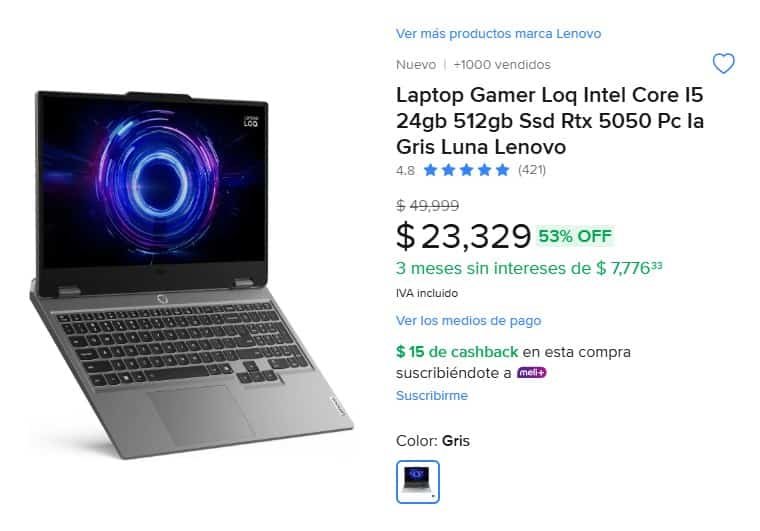 La Laptop Gamer Lenovo LOQ con Intel Core i5, 24GB RAM y RTX 5050 aparece con una rebaja agresiva del 53% en Mercado Libre, colocándose como una opción muy competitiva en gama media-alta.